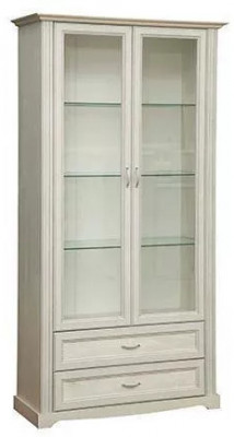 Шкаф 2-х дверный со стеклами и ящиками (гл.410) Монако МН-46 белое дерево